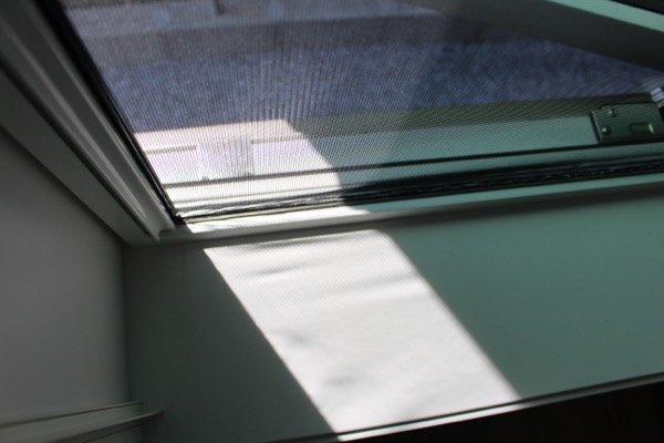 リビングなどの大きい窓は、通常の窓枠に網が貼られてる一般的な網戸ですが、それ以外の網戸はロール状になってる網を引っ張って取り出すような構造です。